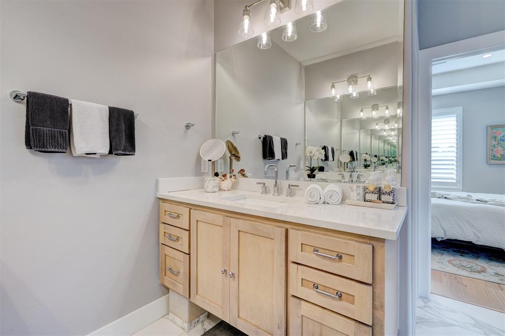 Inside, you'll find a thoughtfully designed layout with spacious rooms, modern finishes, and an abundance of natural light. The open-concept living area is perfect for entertaining, while the kitchen boasts high-end appliances and ample storage for all your culinary needs. The owner's suite is a private retreat with an en-suite bath with soaking tub and good sized closet with built in cabinets.